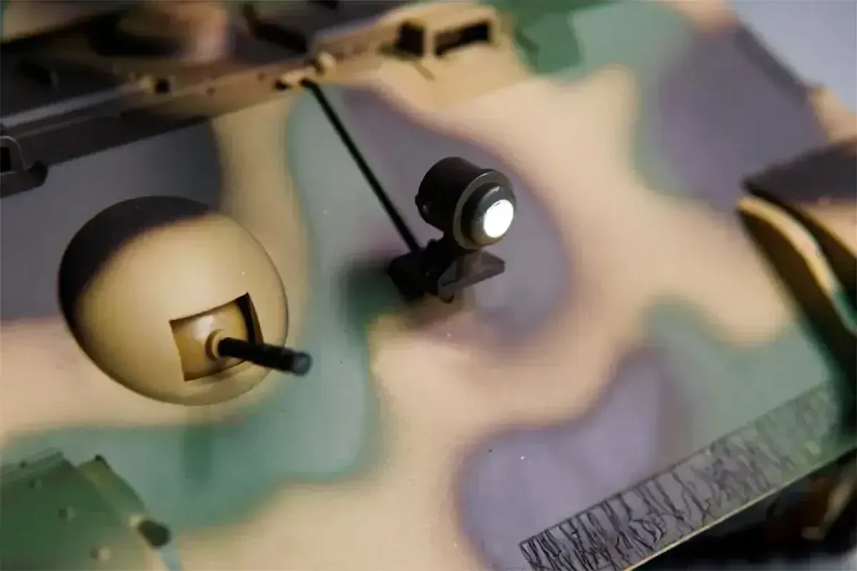 • Bright LED headlights enhance visibility and realism, allowing you to operate your tank in low-light conditions