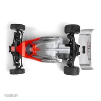 A sleek 1.5mm anodised aluminium chassis, fully ballraced drivetrain and a smooth 3-gear rear transmission work together to give the Microbe a planted, precise feel. Add in oil-filled coilover shocks and vented wheels with foam inserts, and you’ve got a tiny buggy that loves to carve corners, soak up bumps, and fire out of turns with confidence.