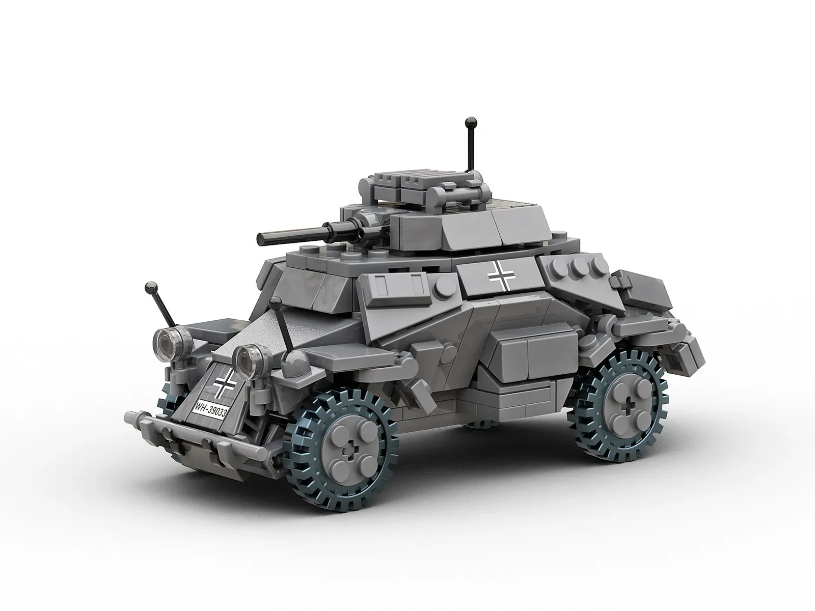 Sd.Kfz.222 ( Leichter Panzerspähwagen) German armed scout car was designed to meet requirements including speed,  reliability, simple construction and good off-road performance.  After been introduced in 1938, it quickly became the main German armored scout car thanks to its speed and the devastating lightweight Rheinmetall 20 mm autocannon. More than 1800 vehicles were produced between 1937 and 1943.