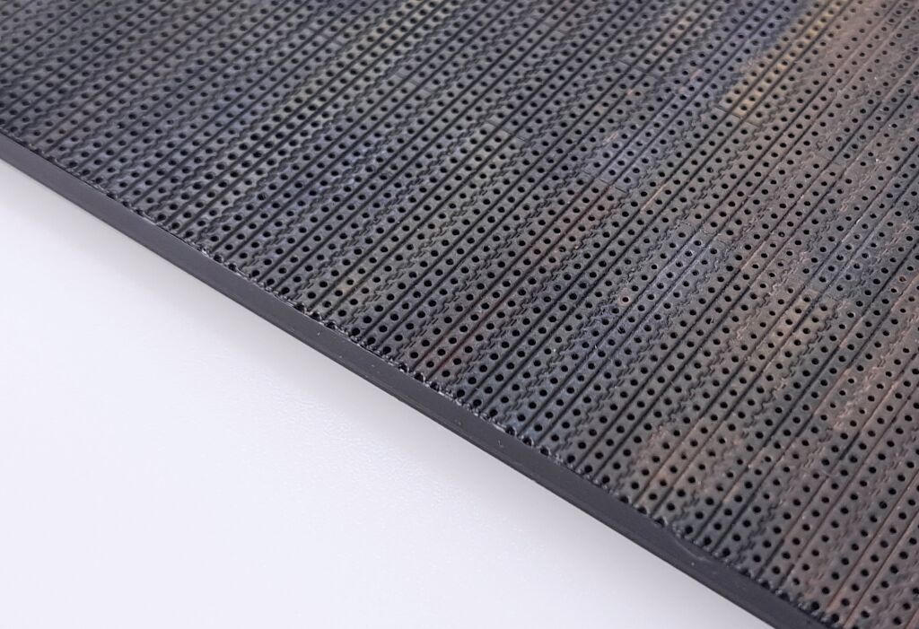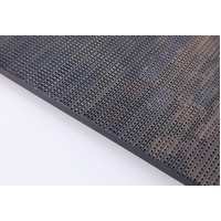 Made from corrosion-resistant manganese steel, the individual mat weighed around 60 pounds. Holes allowed drainage and reduced the weight. Each piece was ringed with hooks to connect the mats into a permanent surface. A set of mats to build a complete runway could be carried within a cargo hold of one Liberty ship. Experienced builders were able to assemble it within 72 hours of unloading.