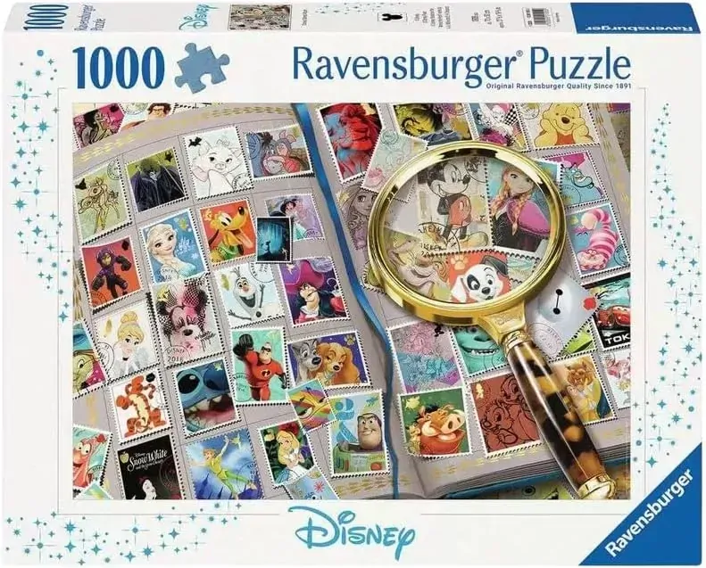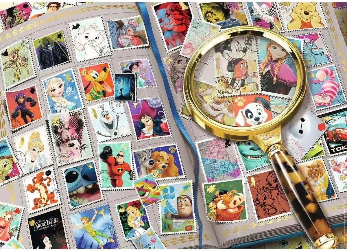 Over 40 of your favourite Disney characters have been turned into postage stamps, and now grace the pages of a wonderful album. The owner of this colourful collection must love to wonder at the detail of each perfect stamp - and we hope you'll enjoy all the details too. The wonderful world of Disney combined with the collectability of stamps = Puzzlers' Heaven.