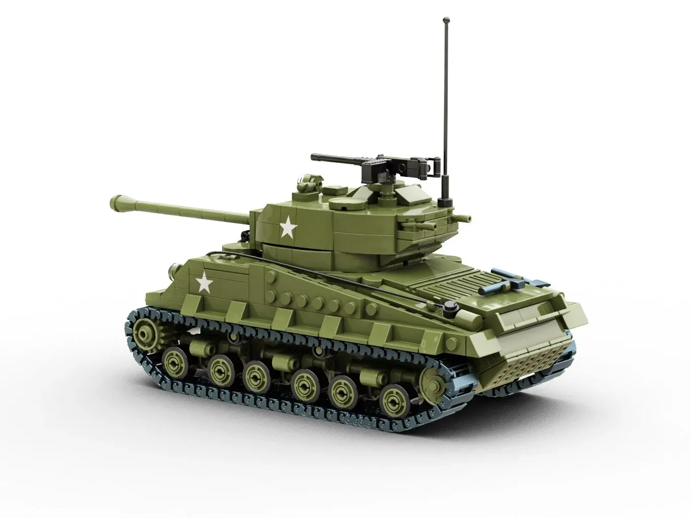 Need more firepower for your allied brick army? Look no further than our Easy 8 tank model kit, a faithful replica of the advanced M4A3E8 variant of the Sherman tank that played a crucial role in the closing stages of World War II. Known for its enhanced armour, superior firepower, and exceptional mobility, the Easy 8 was instrumental in the Allied forces’ push across Europe. This model not only maintains accurate proportions like other Buildarmy kits but also features a detailed representation of the horizontal volute spring suspension (HVSS) system. With wider tracks designed to distribute weight more effectively and provide a smoother ride, the HVSS earned the tank its nickname “Easy 8” from its experimental “E8” designation.