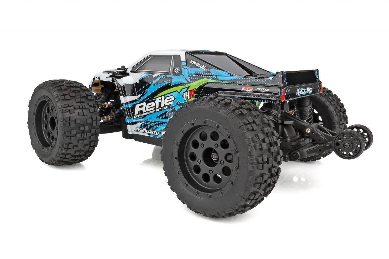 Team Associated's 1:14 scale Reflex 14MT 4WD electric monster truck comes out of the box assembled and ready-to-run! It features a Reedy Power brushless speed control and motor, high-torque digital steering servo, and 2.4GHz radio system. With all that power available at your disposal, you know this monster truck was designed with performance in mind. The versatility offered by the all-terrain tires, adjustable wheelie bar, turnbuckles, caster blocks and rear hubs make the Reflex 14MT ready for any terrain you can throw at it.