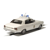 This is a Scalextric slot car of the Victoria Police car, the Ford XY Falcon in white livery