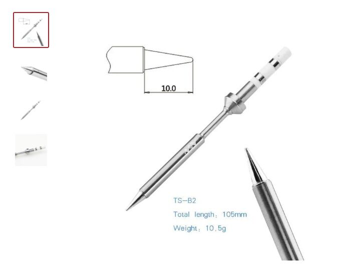 This is a replacement soldering iron tip for the Miniware TS100 Digital OLED Soldering Iron. The B2 Tip is a standard conical tip. It is good for a majority of soldering jobs. It's great for beginners as it is easy to use.