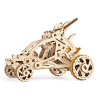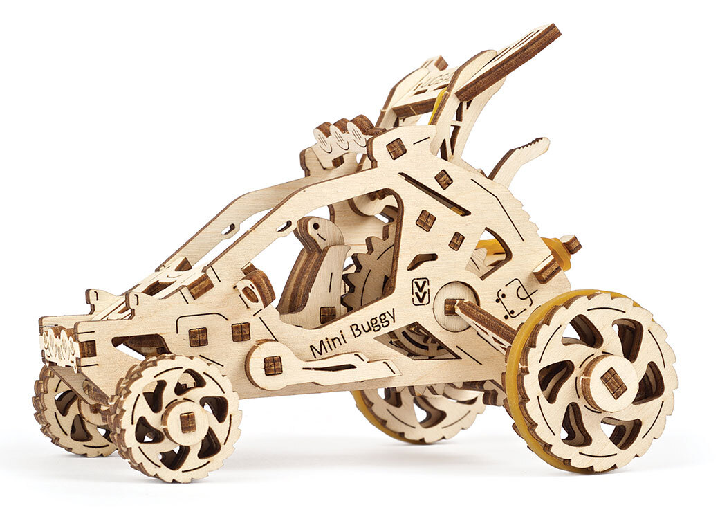 Welcome to the expanding fleet of vehicles in the amazing collection of Ugears wooden mechanical models. We would like you to meet our new little pet: the fast and fun Mini Buggy. This miniature dune buggy is ready to take you on a ride.