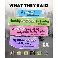 Zombie Kidz Evolution is the first "legacy"-style game for kids, with basic gameplay similar to the 2013 title Zombie Kidz — but things will quickly evolve!